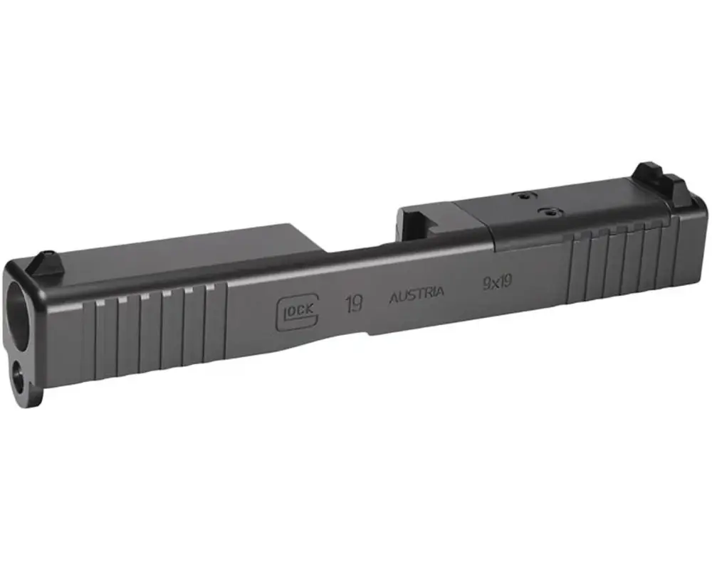 A stripped OEM slide supports custom configurations and optic-ready builds. It typically includes: